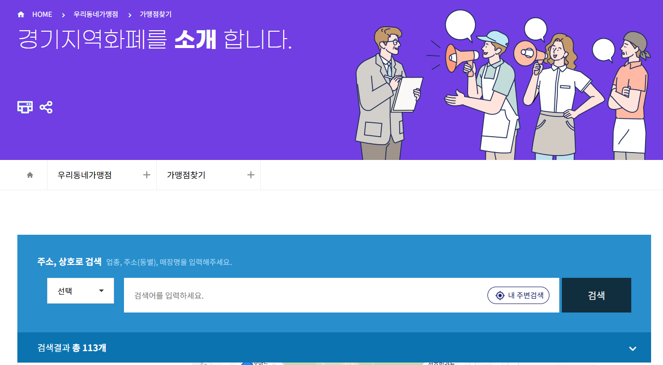 경기지역화폐 홈페이지에사 "가맹점 찾기" 기능 이용